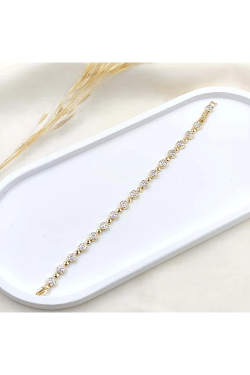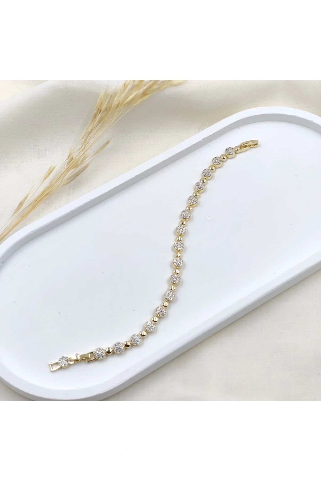 Crystal Sphere Kuyumcu İşçiliği 14K Altın Kaplama Premium Seri Kadın Çelik Bileklik