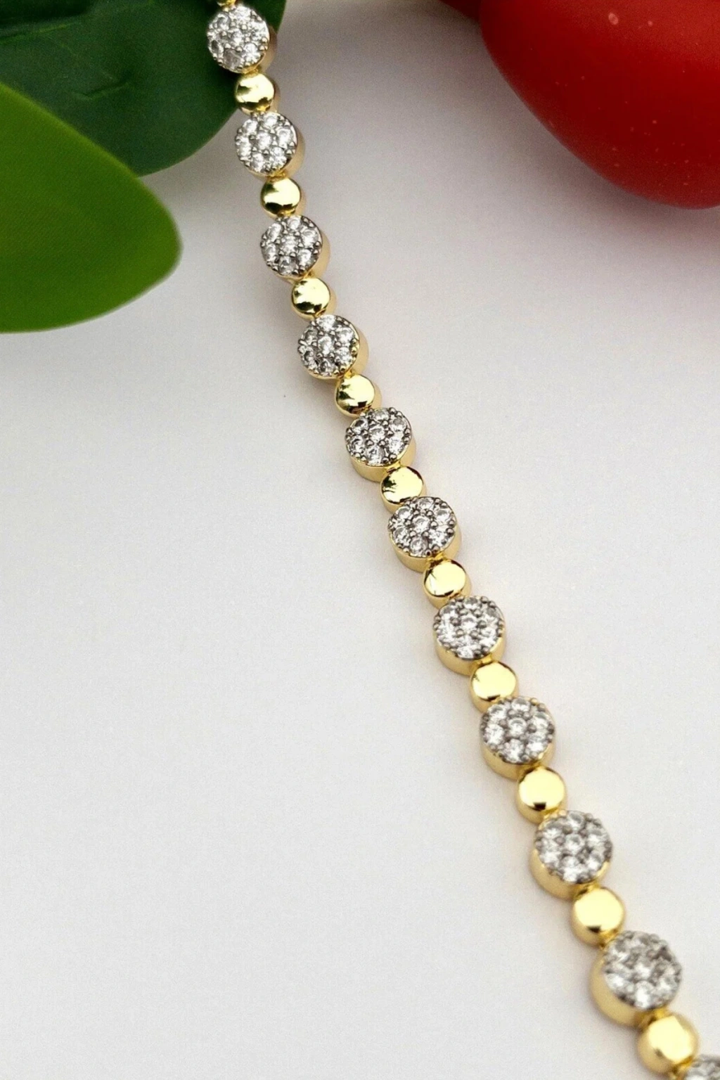 Zarafeti ve modern şıklığı bir araya getiren çelik bileklik, günlük kullanımda olduğu kadar özel davetlerde de stilinize ışıltı katıyor. Paslanmaz çelikten üretilen bu model, altın kaplama halkaları ve zirkon taş detaylarıyla göz alıcı bir parıltı sunuyor. Antialerjik yapısıyla cildinizde güvenle kullanabilir, kararma yapmayan dayanıklı dokusuyla uzun yıllar ilk günkü ışıltısını koruyabilirsiniz.