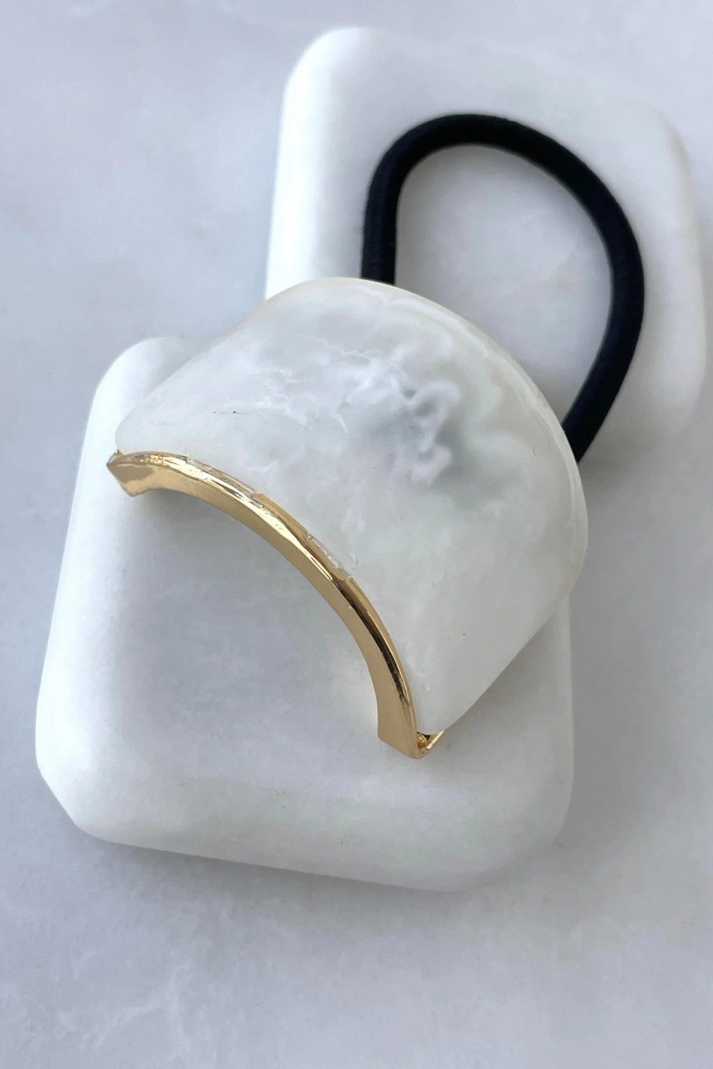 - Kadın ve kızlar için özel olarak tasarlanmış, şık ve modern bir aksesuar.; - Mermer görünümüyle dikkat çeken, zarif bir tasarıma sahip lastik toka.; - Altın detaylarıyla göz alıcı bir görünüm sunan bu toka, her türlü kıyafetle uyum sağlar.; - Yetişkinlerin kullanımına uygun olarak üretilmiş, dayanıklı ve uzun ömürlü bir aksesuar.;