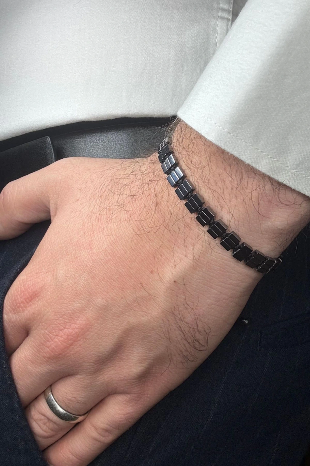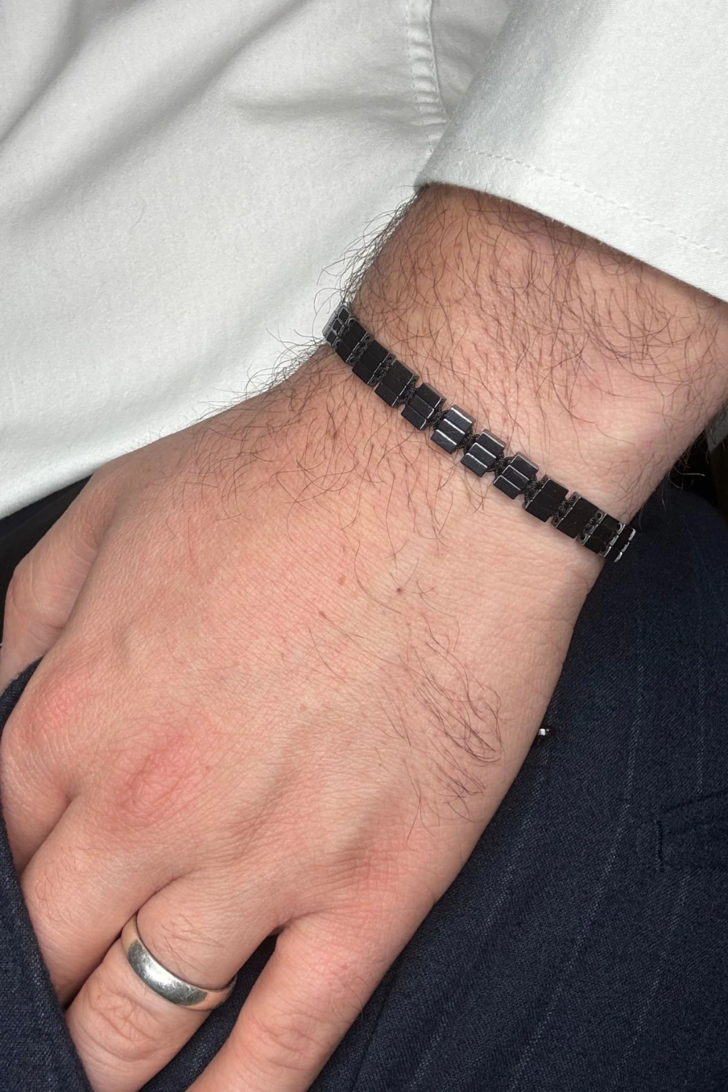 - Özel tasarım ince kesim dikdörtgen hematit taşı, şıklığınızı tamamlarken aynı zamanda doğal taşın zarafetini bileğinizde hissettirir.; ; - Ayarlanabilir yapısı sayesinde farklı parmak ölçülerine kolayca uyum sağlar ve konforlu bir kullanım sunar.; ; - Tek beden seçeneği ile herkesin rahatlıkla tercih edebileceği standart bir tasarıma sahiptir.; ; - Gri renkteki hematit taşı, modern ve sofistike görünümüyle dikkat çekerken, günlük kombinlerinizle kolayca uyum sağlar.; ; - Doğal taş kullanımı, hem estetik hem de kalite açısından değerli bir aksesuar deneyimi vaat eder.