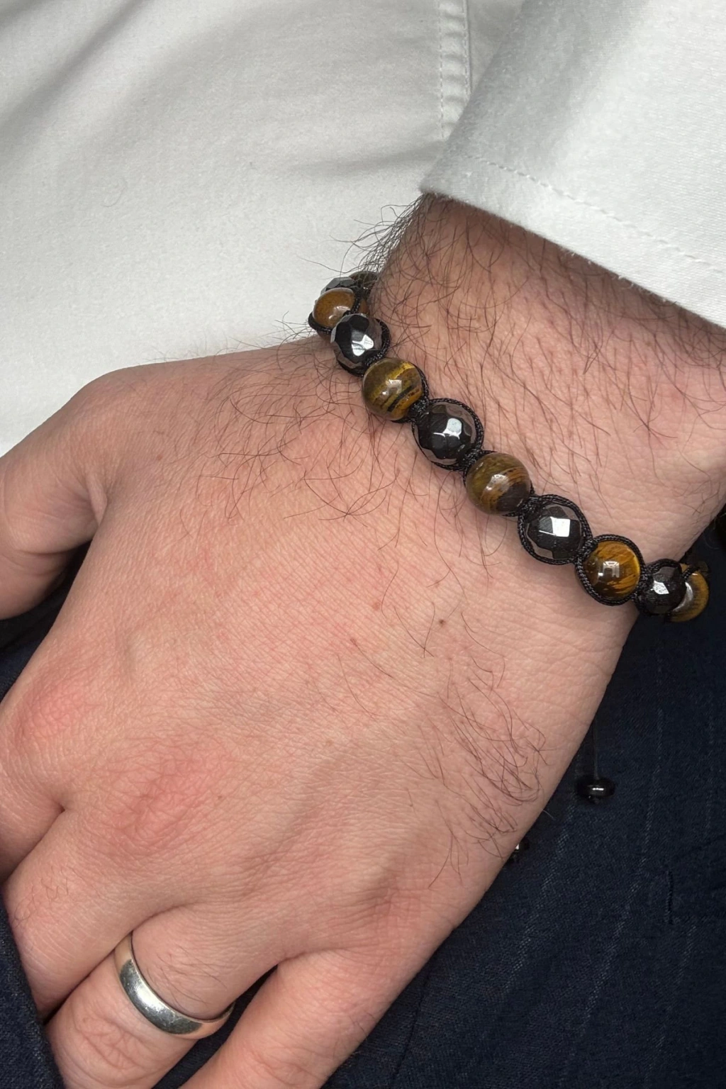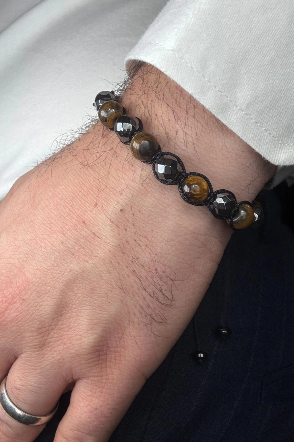 - Özel tasarım kaplan gözü hematit taşı, hem şıklığı hem de enerjiyi bileğinize taşır.; ; - Asansör ipli yapısı sayesinde kolayca ayarlanabilir ve her bedene uyum sağlar.; ; - Tek ebat seçeneği ile farklı parmak ölçülerine mükemmel uyum sunar.; ; - Canlı renkleriyle dikkat çeken kaplan gözü ve hematit taşları, göz alıcı bir görünüm kazandırır.; ; - Doğal taş kullanımıyla benzersiz ve otantik bir aksesuar deneyimi yaşatır.