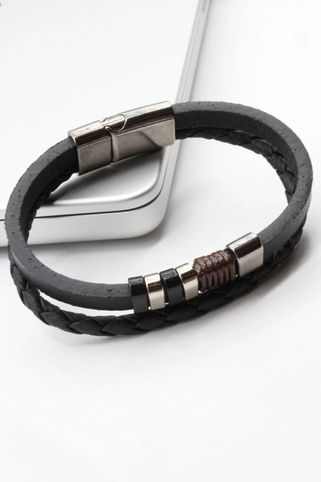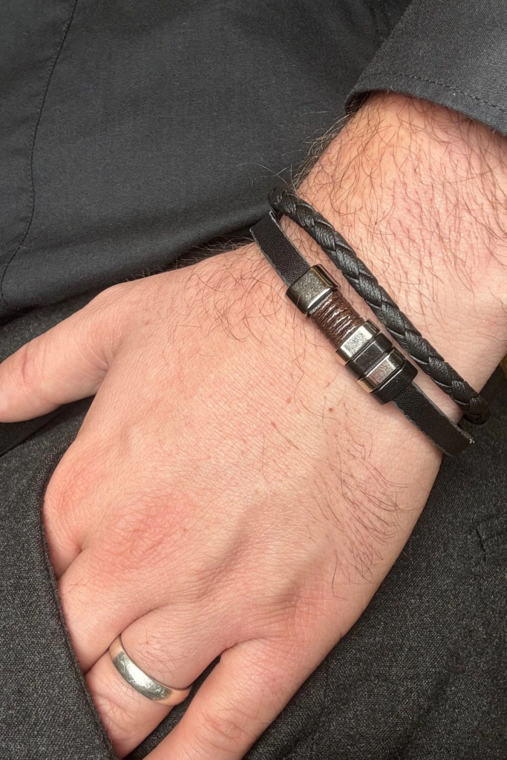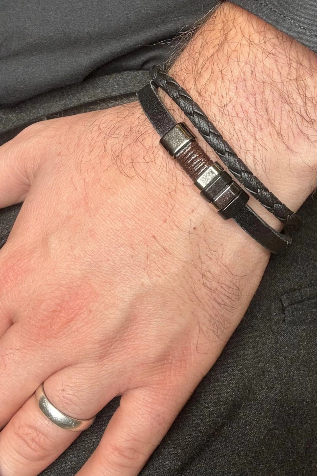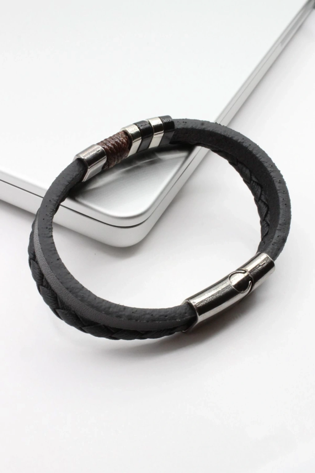 - Özel üretim tasarımıyla dikkat çeken bu bileklik, erkeklerin tarzını tamamlar.; ; - İki farklı görünüm sunan örgü detayları ile şıklığı ve rahatlığı bir arada yaşatır.; ; - Çelik detaylarıyla dayanıklılığı artırılmış, kararmaya karşı koruma sağlayan yapıya sahiptir.; ; - Siyah deri malzemesiyle klasik ve zamansız bir görünüm sağlar; her türlü kıyafetle uyum içinde olur.; ; - Tek beden seçeneği sayesinde geniş kullanım imkanı sunar; her boyut için idealdir.