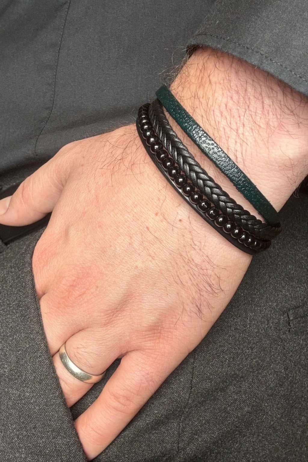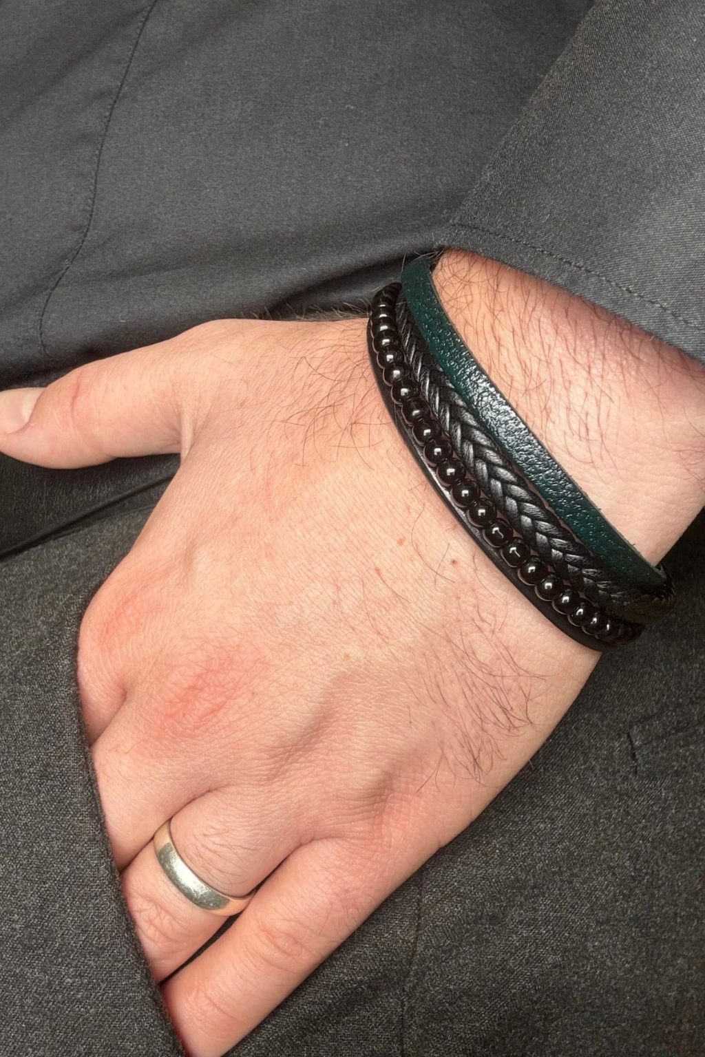 - Özel üretim hematit taşı ile tasarlanmış, şıklığı ve dayanıklılığı bir arada sunan erkek bileklik.; ; - Hematit taşının doğal rengini yansıtan siyah ve yeşil renk kombinasyonuyla dikkat çekici bir görünüm sağlar.; ; - Hakiki deriden üretilmiş olup, uzun süreli kullanım için idealdir; her bedene uygun tek ebat seçeneğiyle rahatlık sunar.; ; - Manyetik tokası sayesinde kolayca takılıp çıkarılabilir ve pratik bir kullanım imkanı tanır.; ; - Siyah web color özelliği ile klasik ve zamansız bir tarz oluştururken, yeşil detaylarıyla modern dokunuşlar ekler.