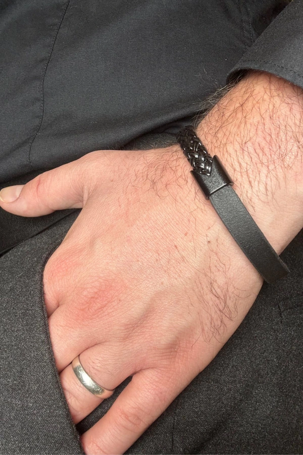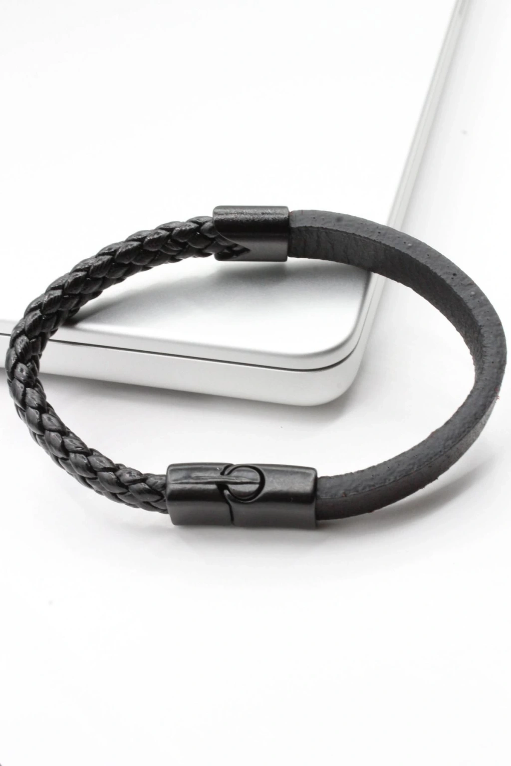 - Özel üretim siyah deri bileklik, şıklığı ve dayanıklılığı bir arada sunar.; ; - Yarısı örgü deseniyle dikkat çeken bu bileklik, modern ve klasik tarzları harmanlar.; ; - Siyah renk seçeneği ile her türlü kıyafetle kolayca uyum sağlar; işlevsellik ve estetiği ön planda tutar.; ; - Manyetik kilit sistemi sayesinde pratik kullanım imkanı sunar; kaybolma veya kopma riskini minimize eder.; ; - Tek beden tasarımıyla geniş kullanıcı kitlesine hitap eder; rahatlıkla tercih edilebilir.
