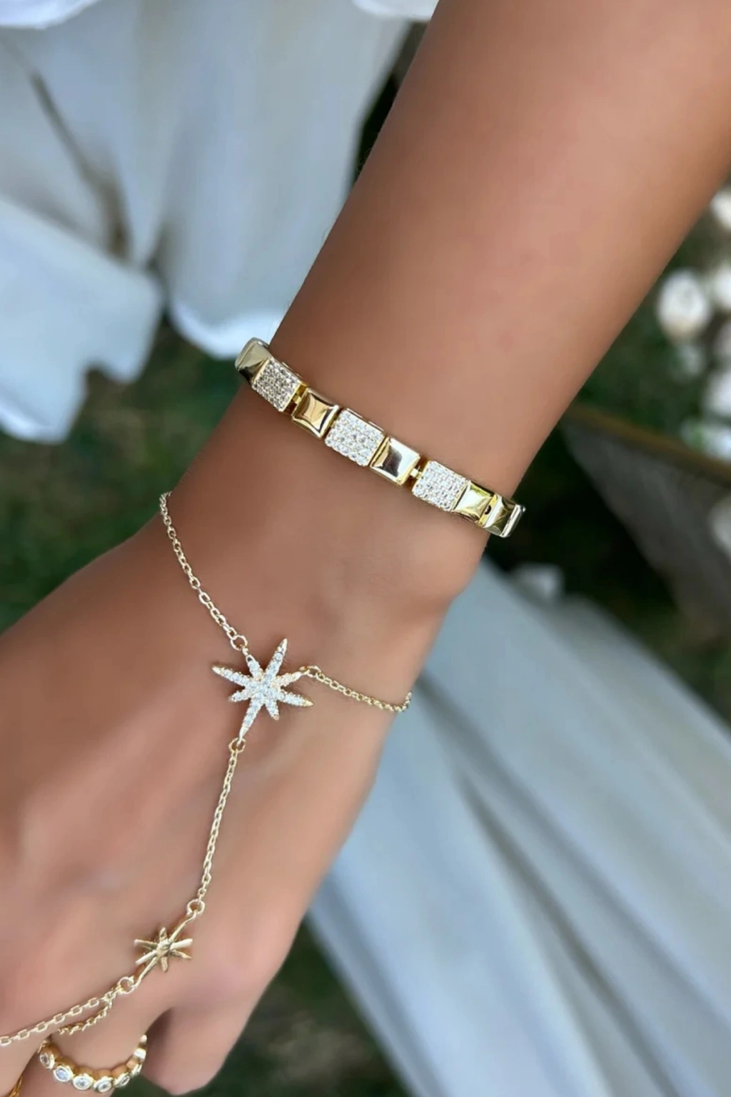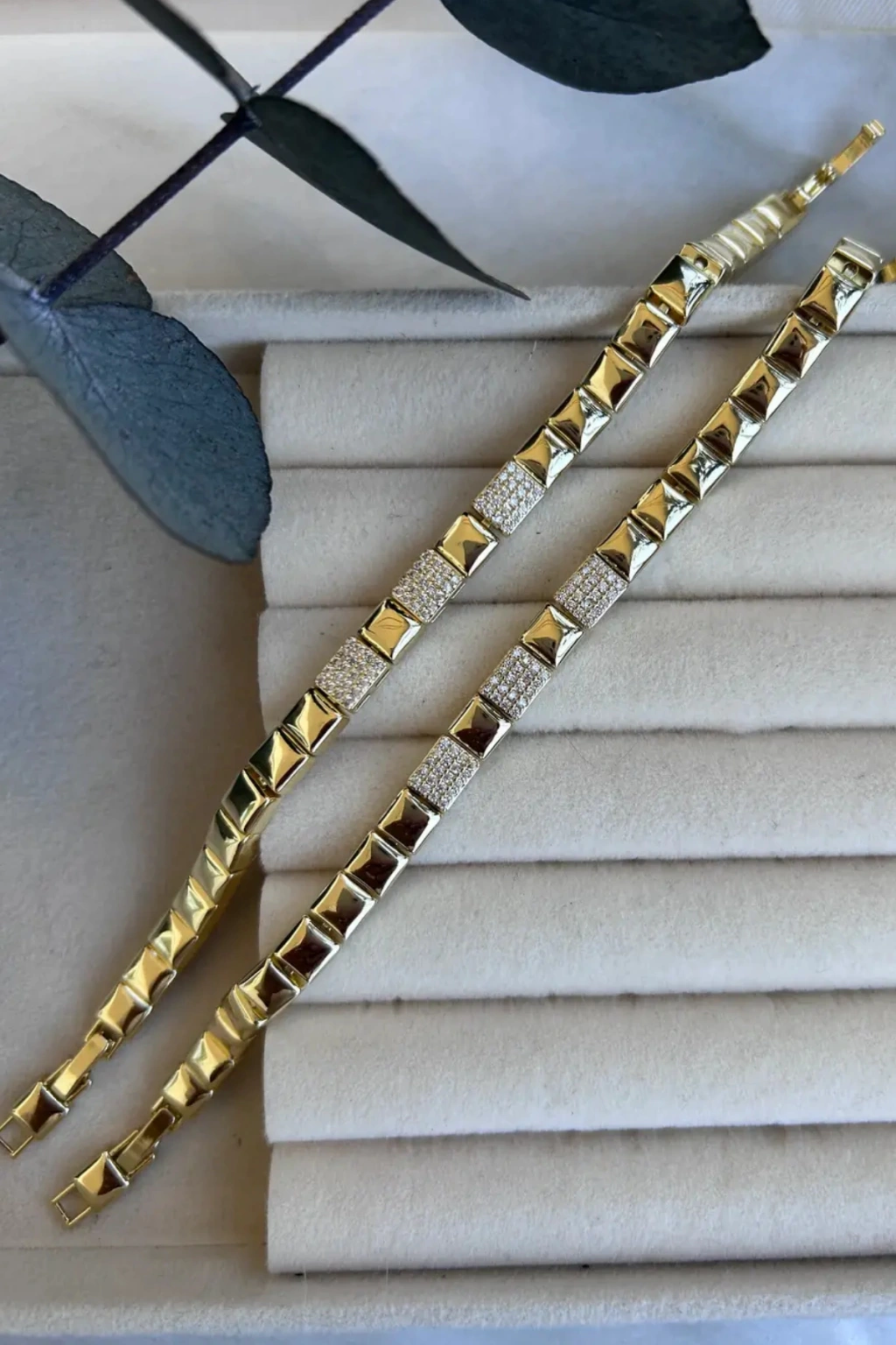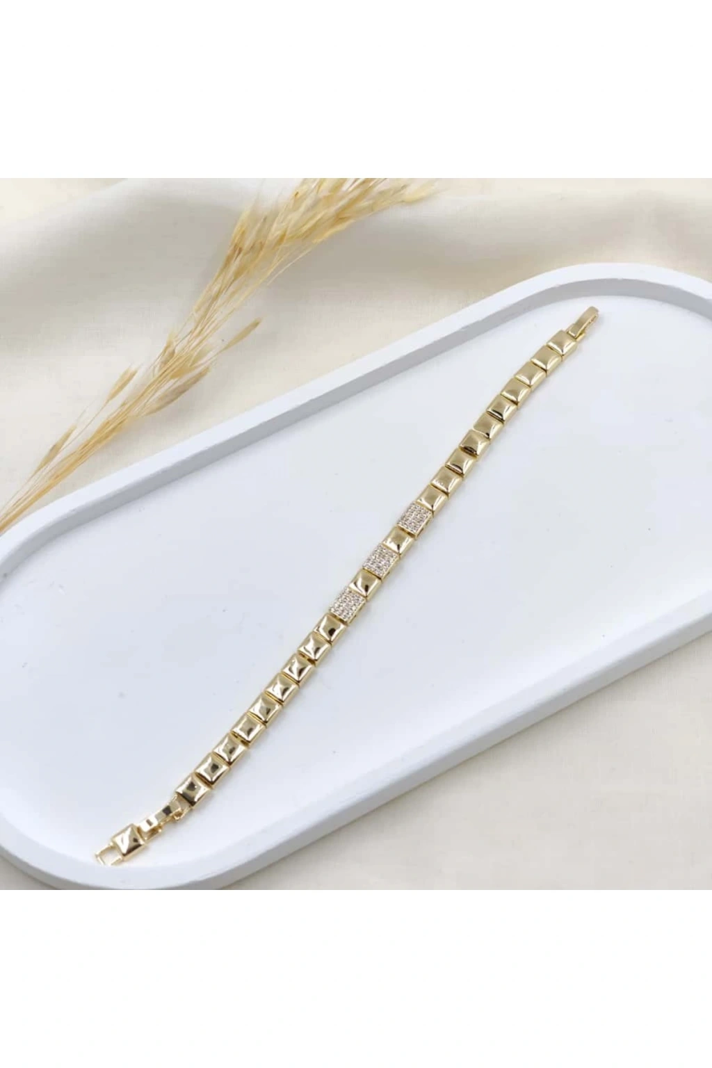Radiant Blocks Kuyumcu İşçiliği 14K Altın Kaplama Premium Seri Kadın Çelik Bileklik
