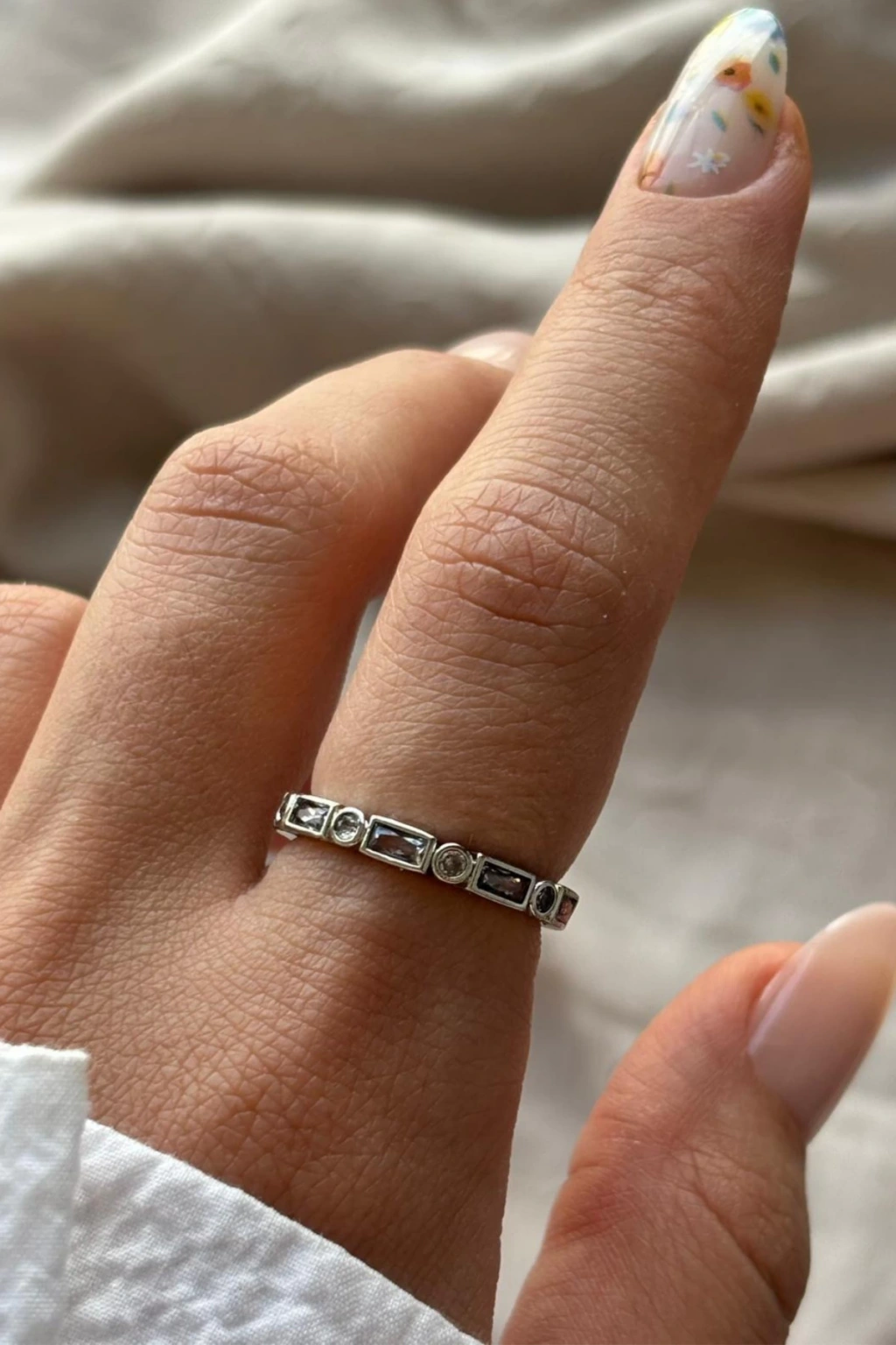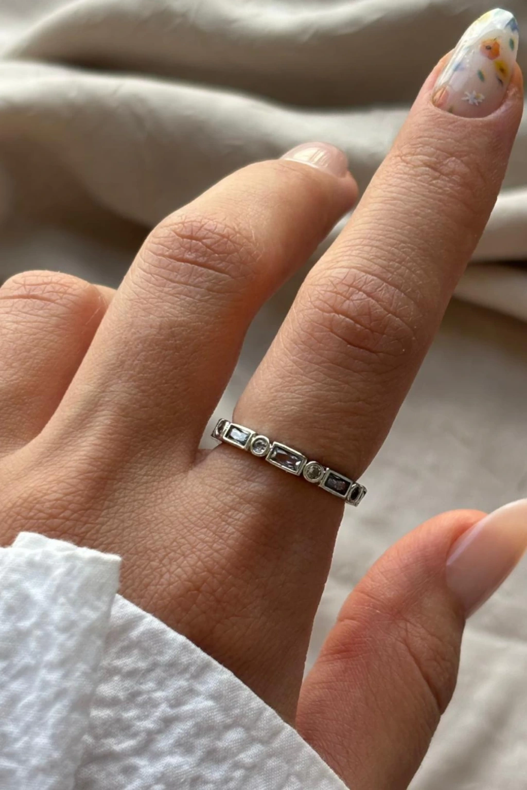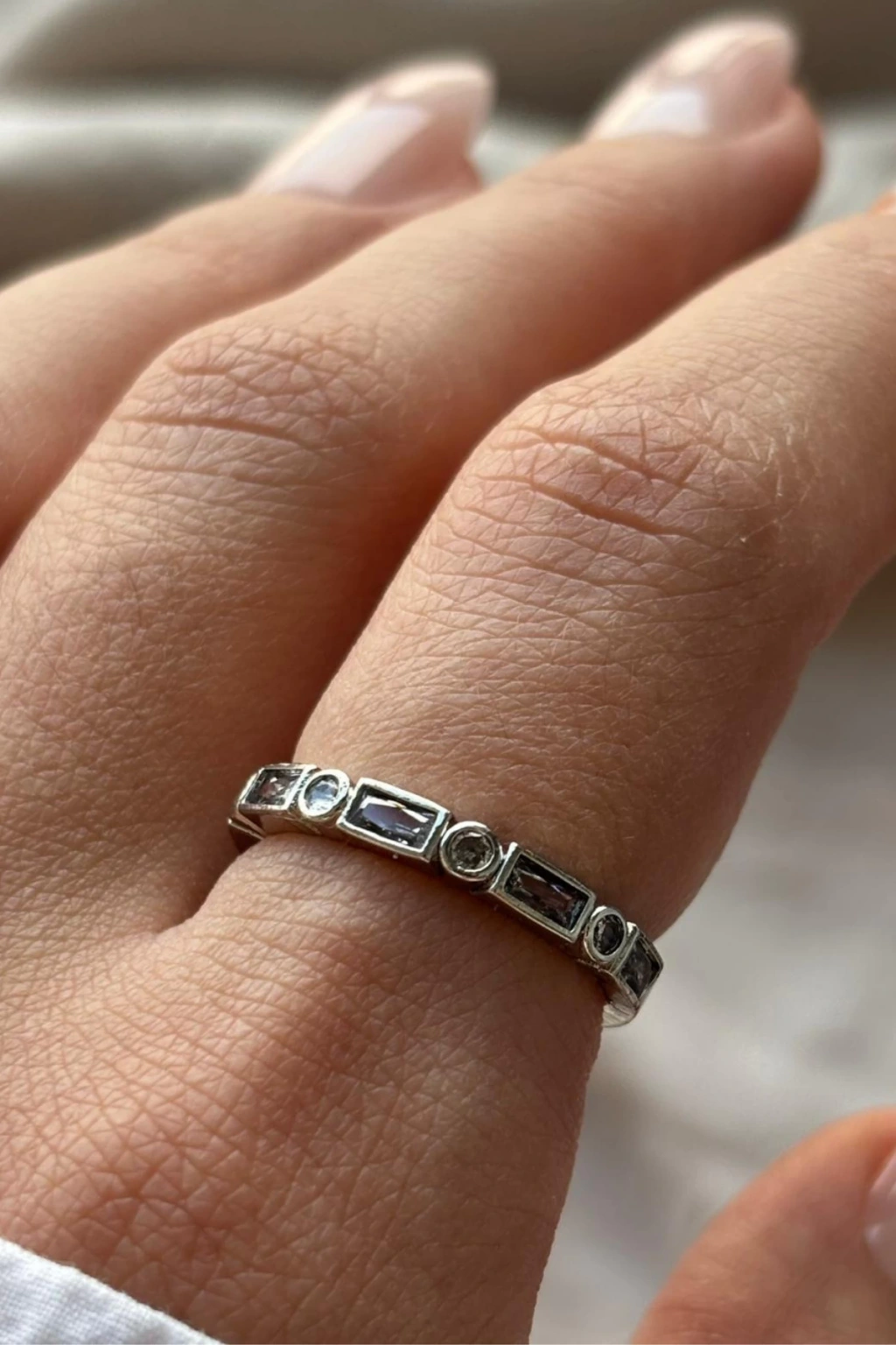 Sequence Yuvarlak Ve Dikdörtgen Taş Sıralı Dizilim Ayarlanabilir Kadın Yüzük