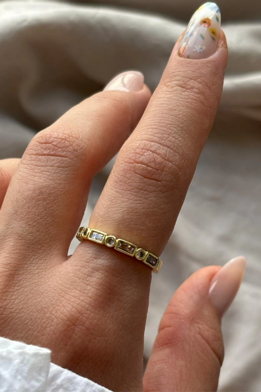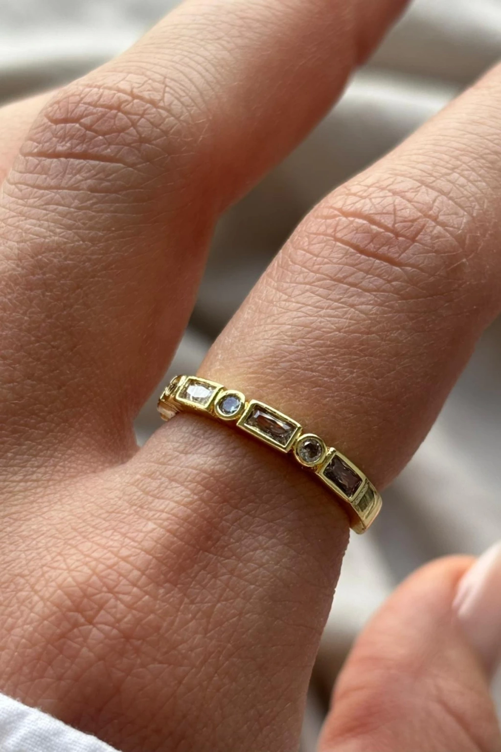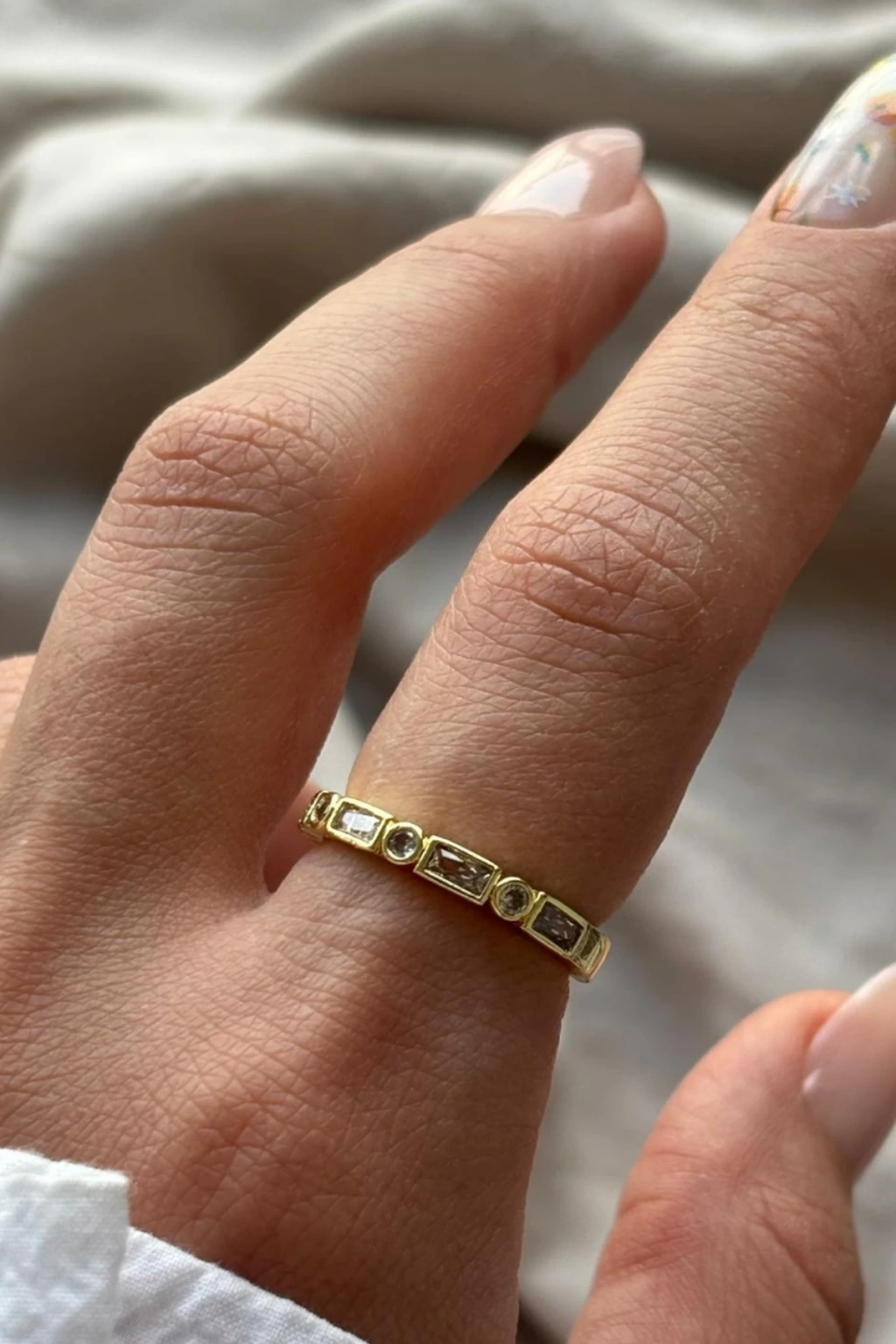 Sequence Yuvarlak Ve Dikdörtgen Taş Sıralı Dizilim Ayarlanabilir Kadın Yüzük