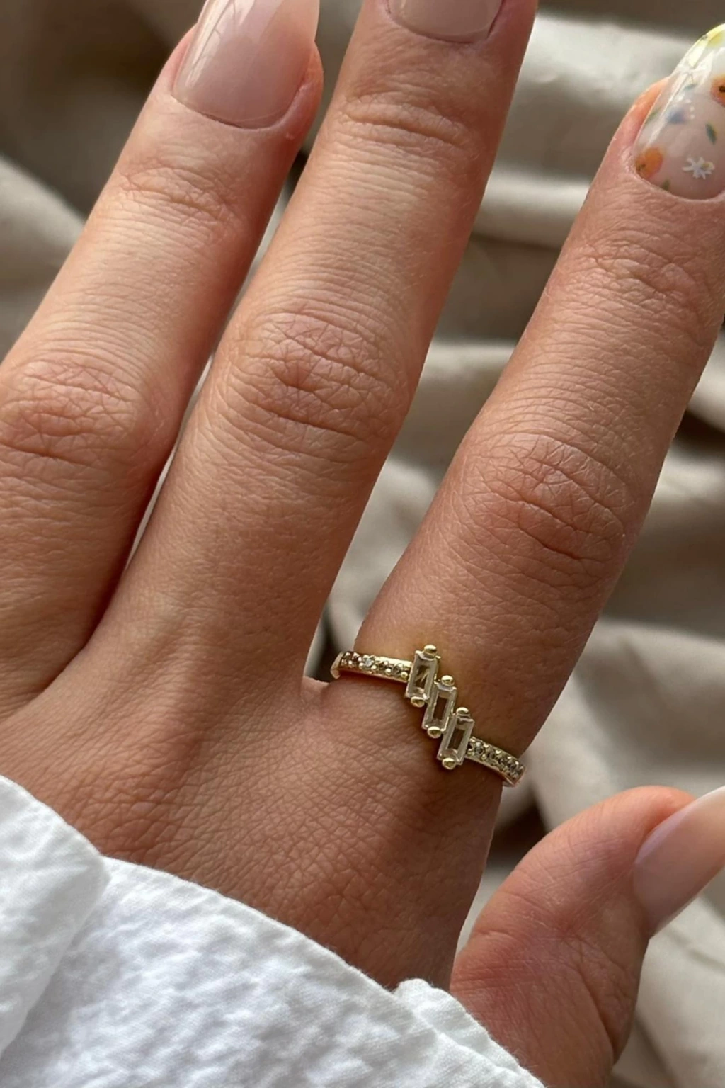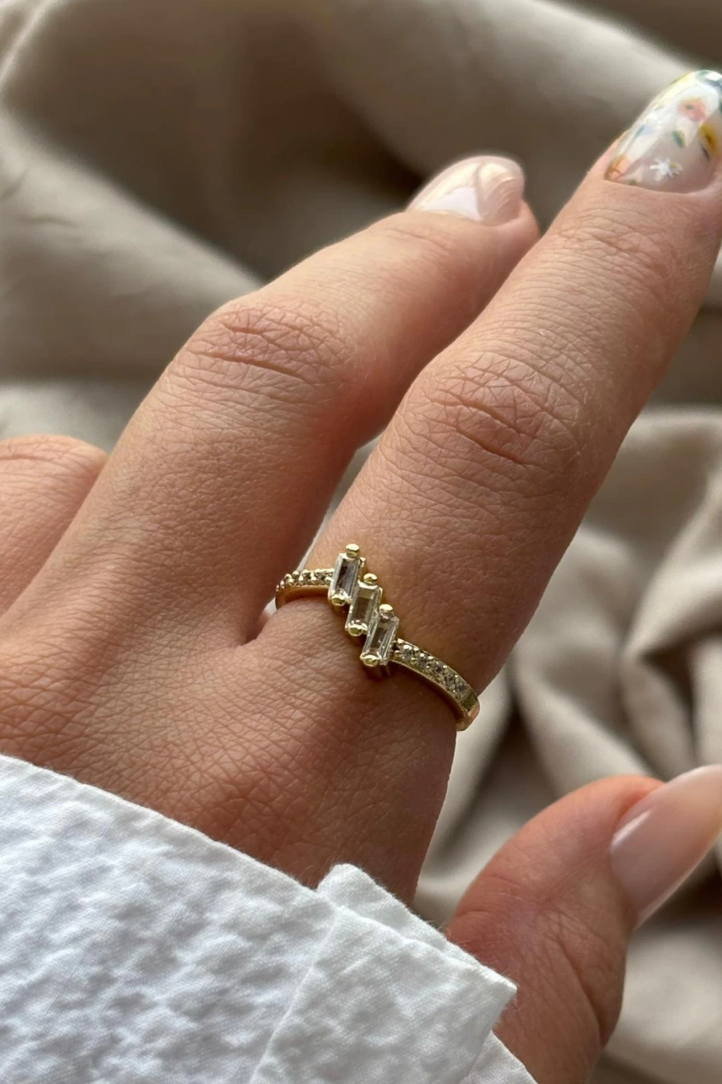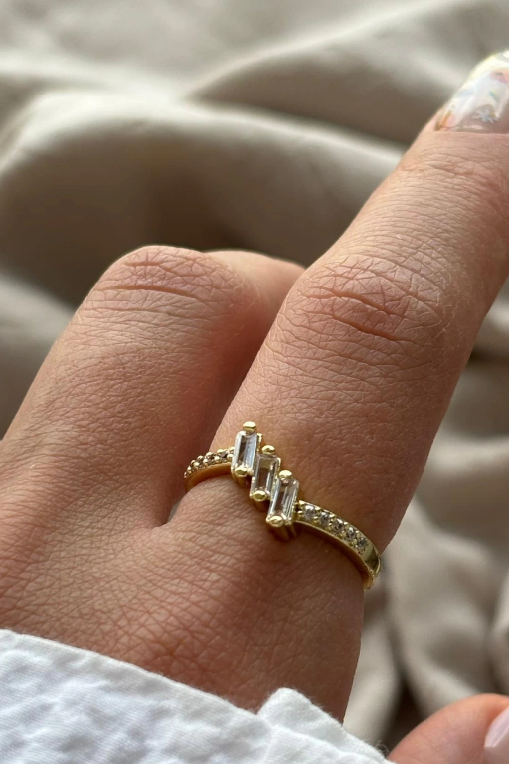 Trinity Üçlü Sıralı Baget Taşlı Ayarlanabilir Kadın Yüzük