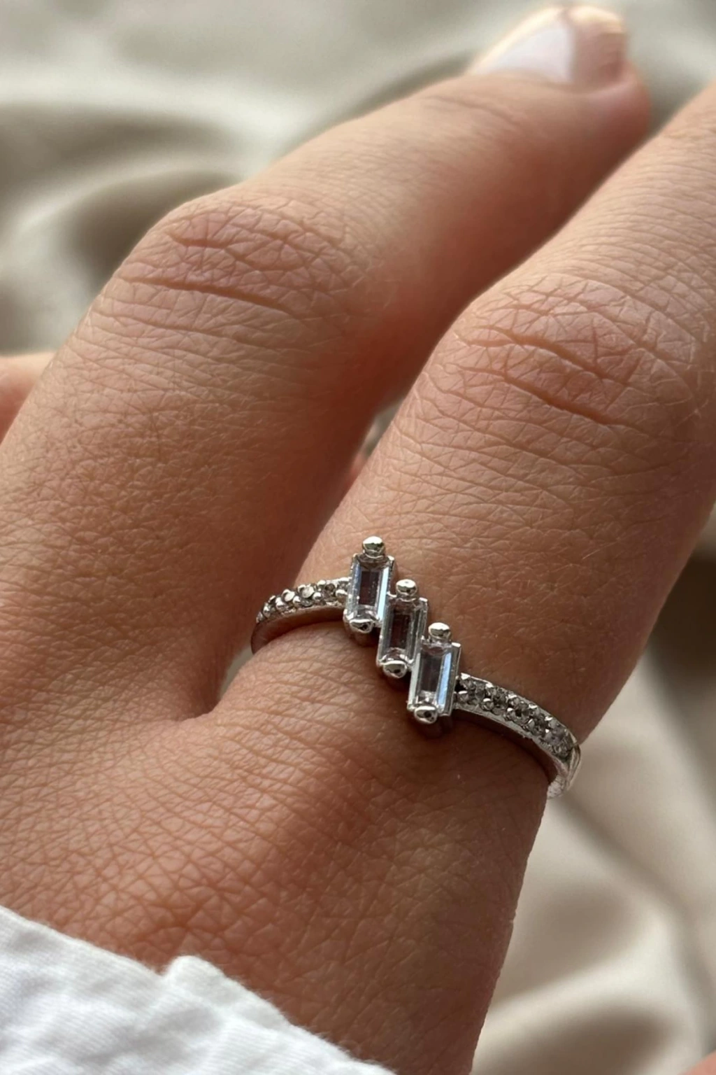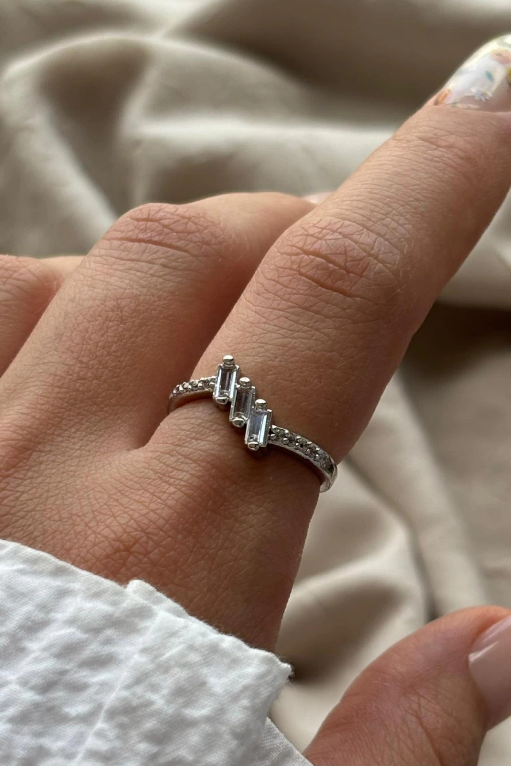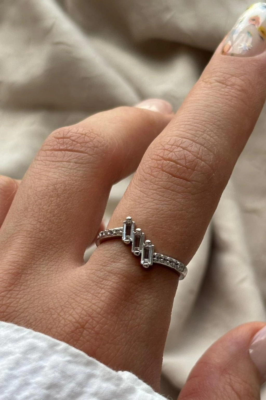 Trinity Üçlü Sıralı Baget Taşlı Ayarlanabilir Kadın Yüzük